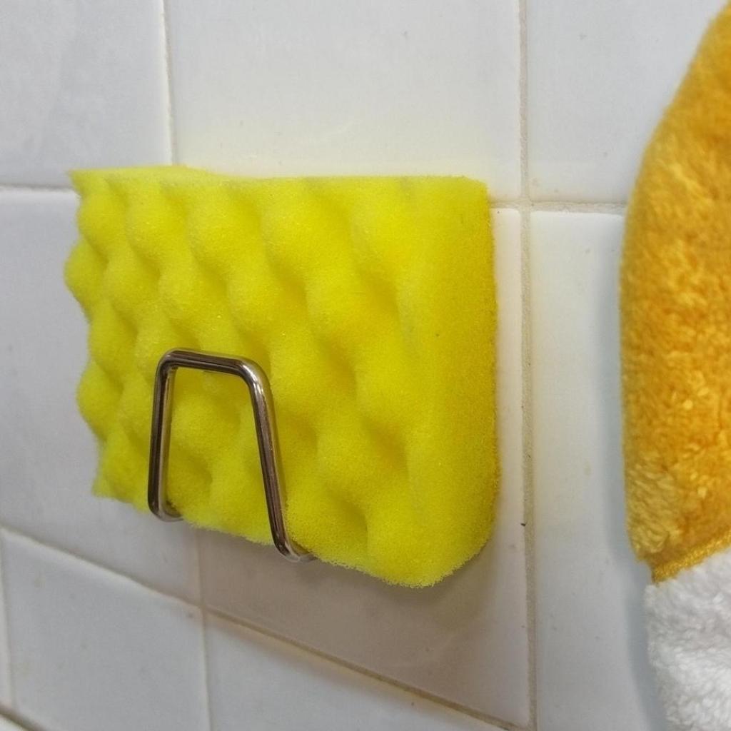 Sponge holder Attaches to self-adhesive tape. Holds securely. Before gluing, you need to clean the surface well. The seller packed his product securely and nothing was damaged during delivery ❤️