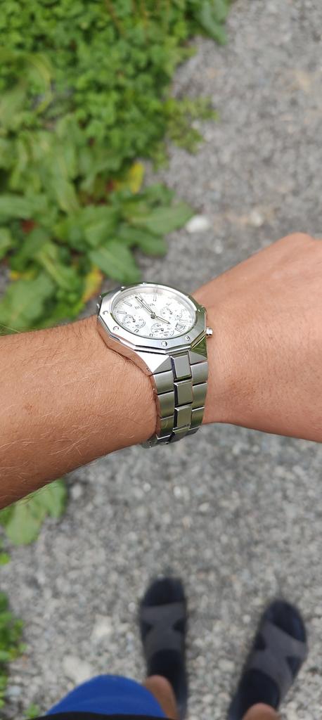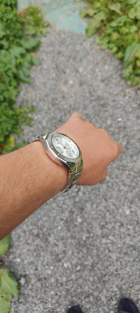 Excellent watch. with a coupon 25t. plus 1000 duty. the integrated bracelet is quite entry-level, although it is solid but rattles. the clasp is stamped. with extension. lug-to-lug size 50mm.. my wrist 18-18.5. on a wrist from 17 it is better to try on live