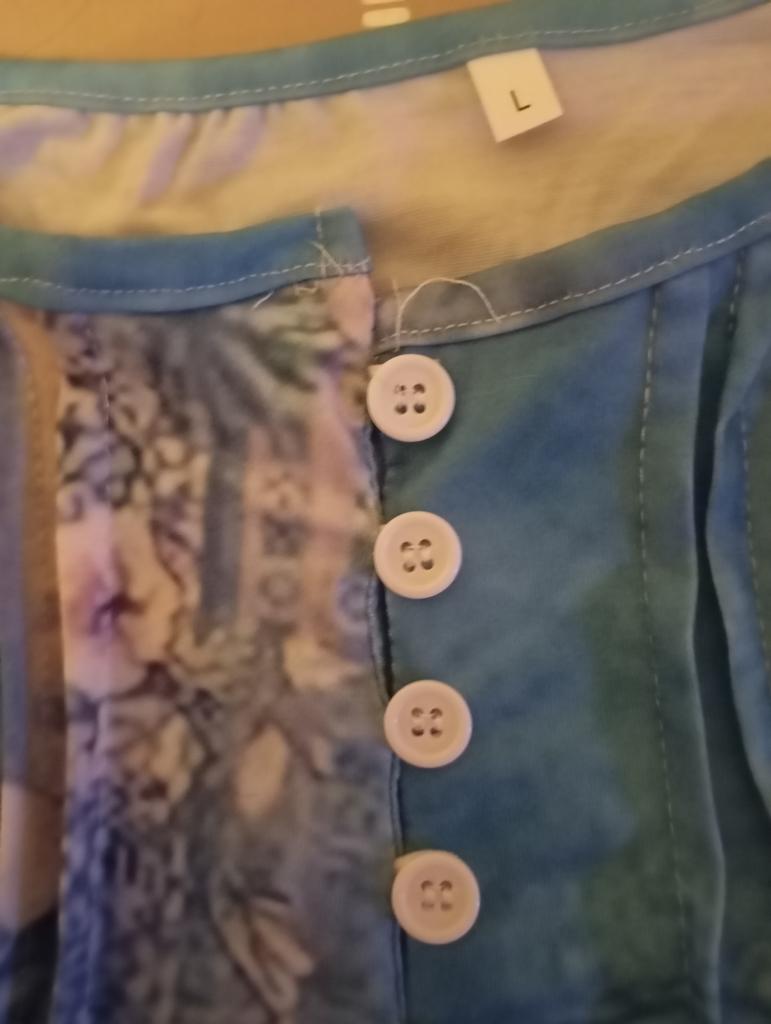 Threads are sticking out, the seam at the bottom of the placket is puckered, the threads on the darts are not the same color as the material, in the photo on the product card the threads are the same color as the material