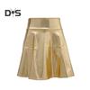 Fashionable pleated skirt with a shiny, solid color design for a flattering figure.