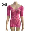 Women Summer Beach Cover Up Hollow Out Long Sleeves Slim Fit Low Cut V Neck Backless See Through Bikini Beach Mini Dress Beach Mock