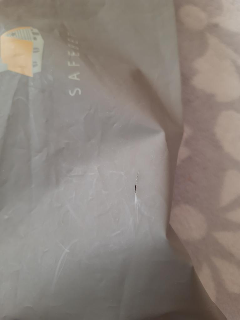 The item is damaged. The bag is crumpled as if it was used many times and torn.