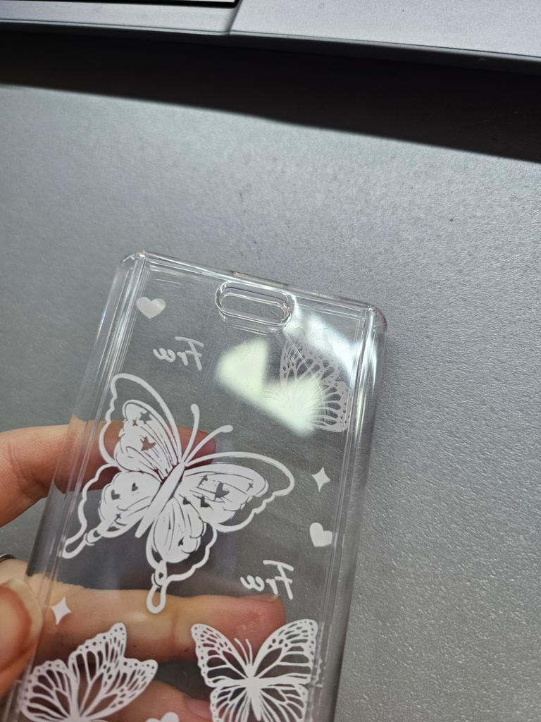 Aesthetic Clear Butterfly Relief Id Card Holder Office Student Subway Bus Meal Card Case Girl Kpop PhotoCard Holder Keychain