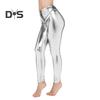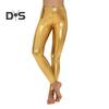 Women Pants Glossy Faux Leather Skinny Elastic High Waist Solid Color Smooth Soft Breathable Tummy Control Ankle Length Club Party Lady Long Trousers