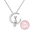 925 Sterling Silver Necklace For Women Moon Kitten Cat Necklaces &Pendants Link Chain Kolye S -N187