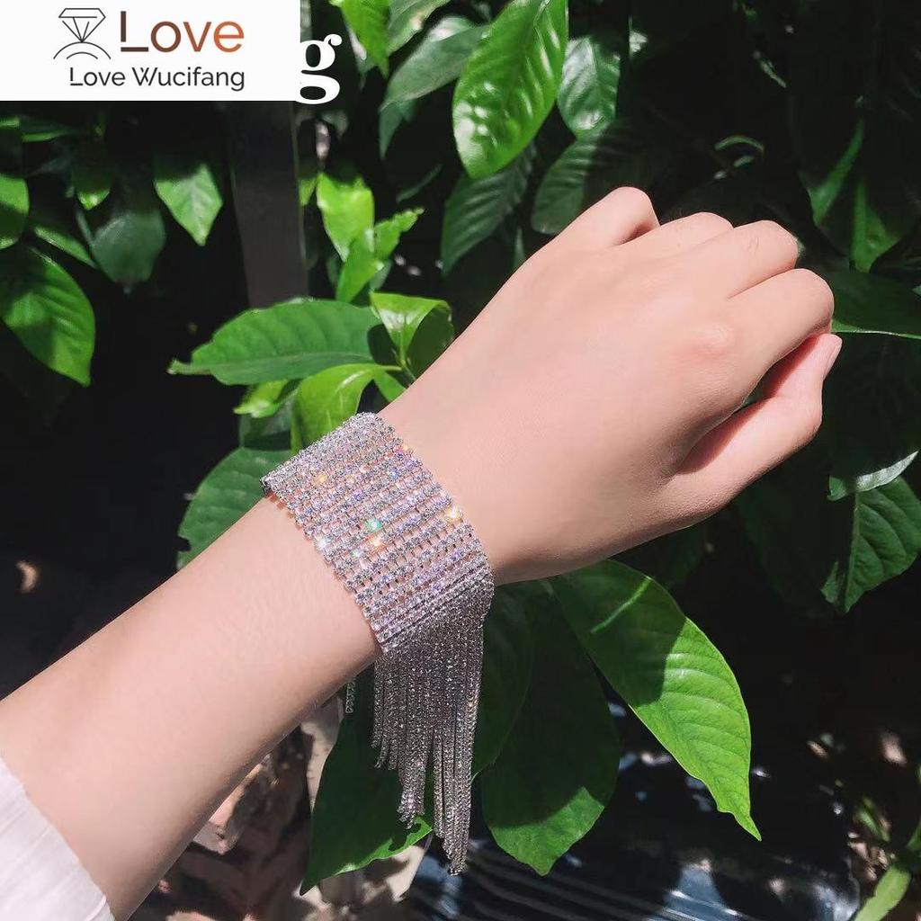 Fashion Long Tassel Rhinestone Bracelet Hand Jewelry For Women Bridal Crystal Statement Bracelets Wedding Jewellery