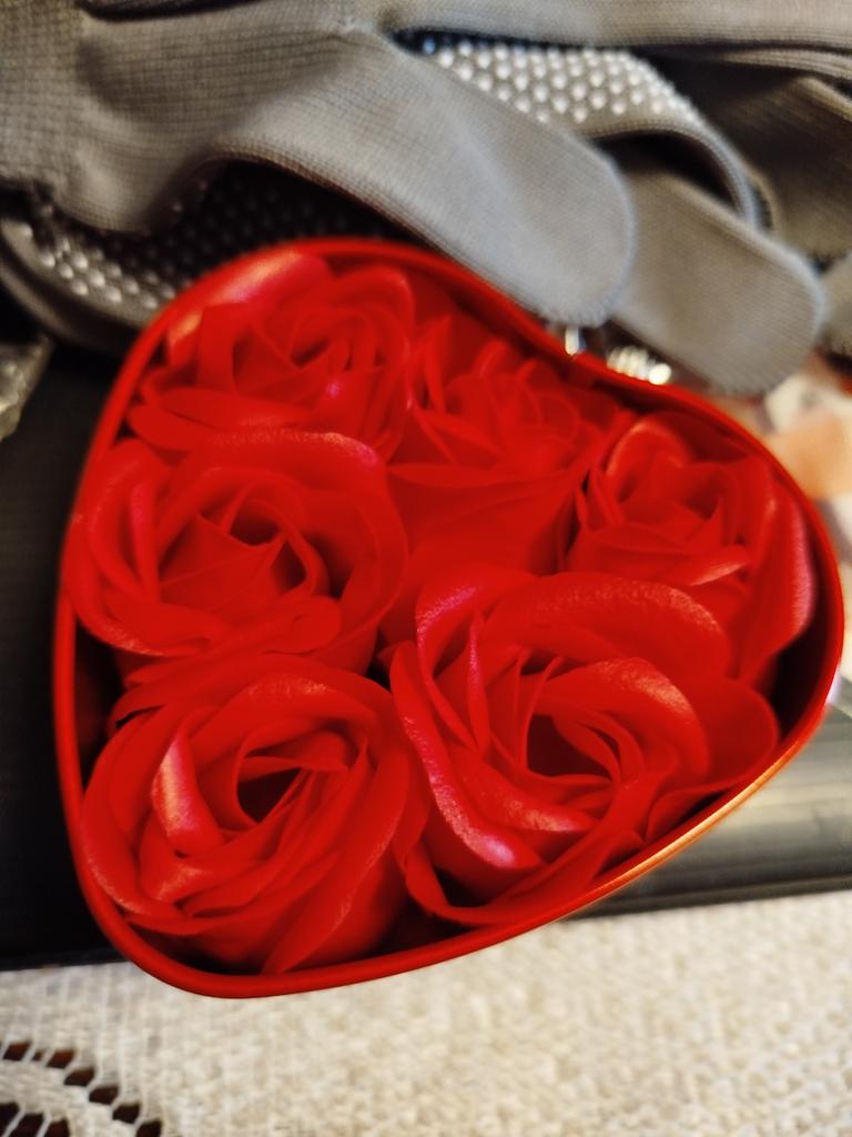 In a thin metal box are six soap roses. A sharp but pleasant smell. Such beauty is not embarrassing to give as a gift. I recommend it.