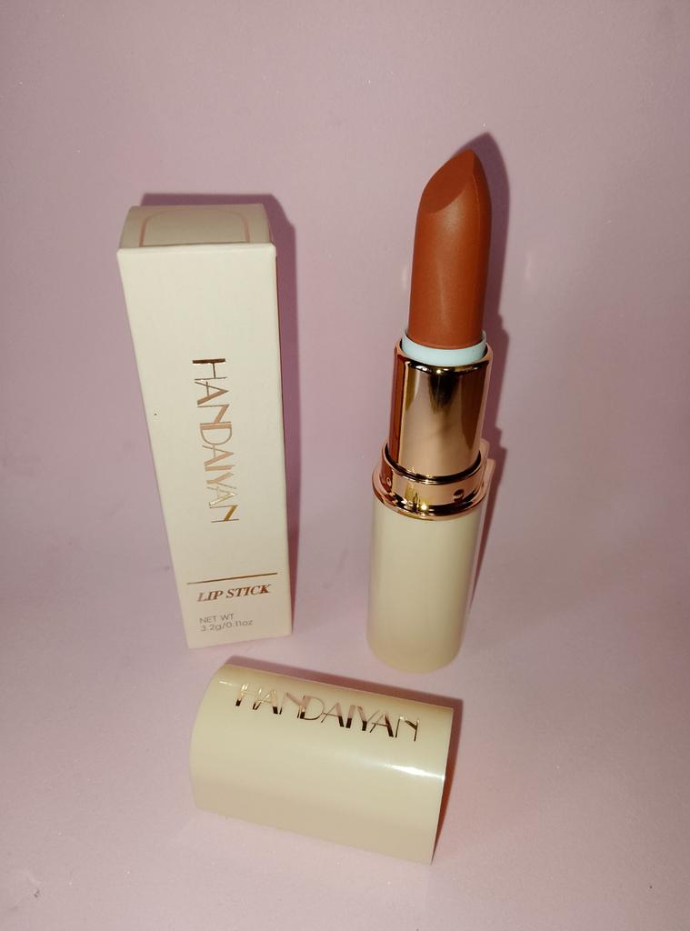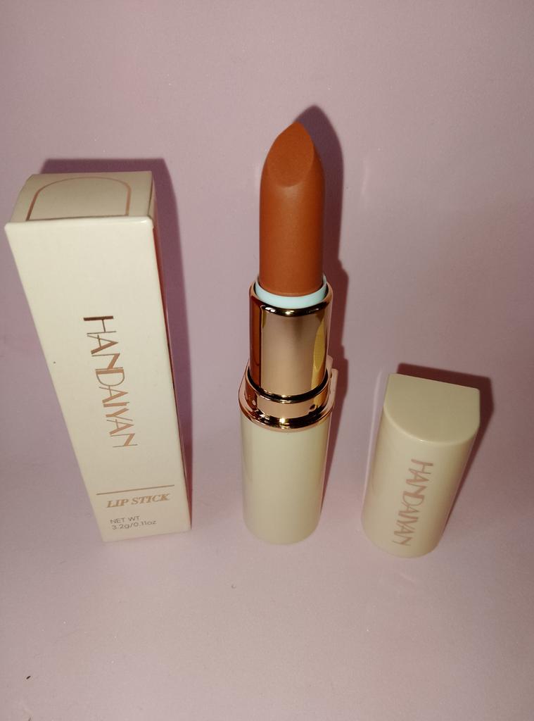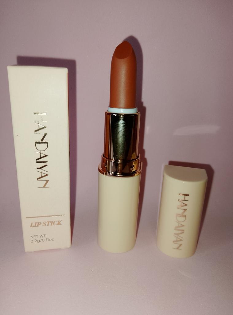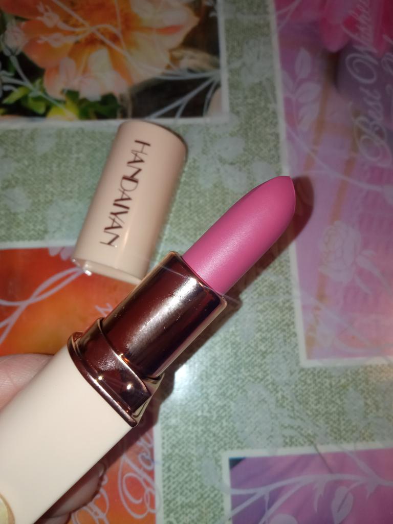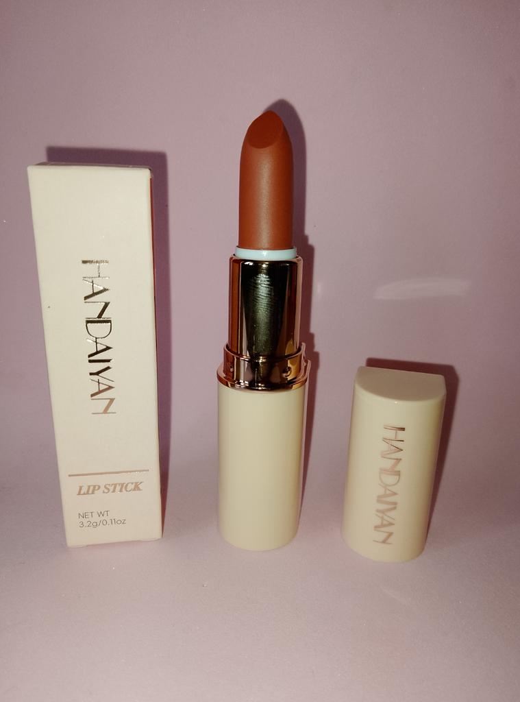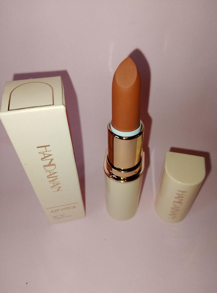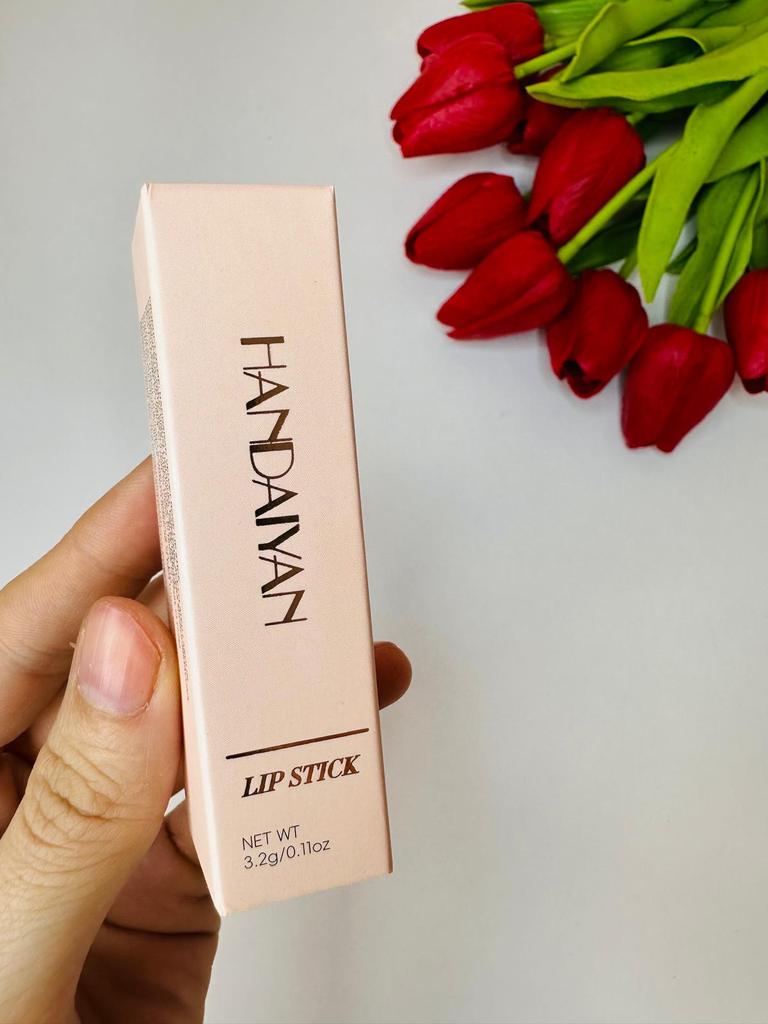 Welcome I really like HandAiyan lipstick, its color is so beautiful, it comes out creamy like butter on the lips, but at the same time it is long-lasting. I recommend it and give it 10/10. It arrived to me within a week and a half, and the packaging was nice.