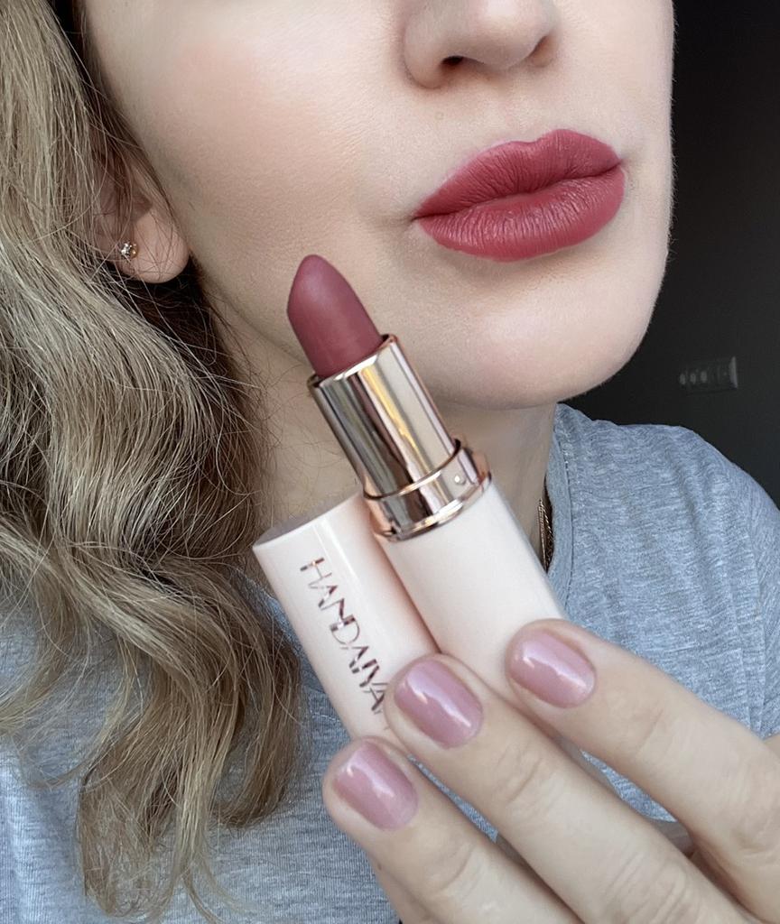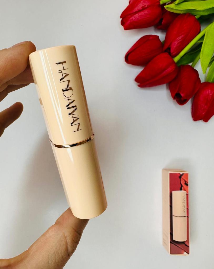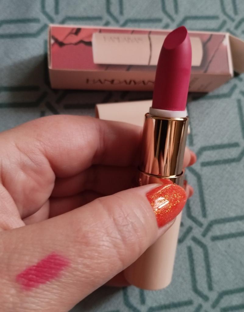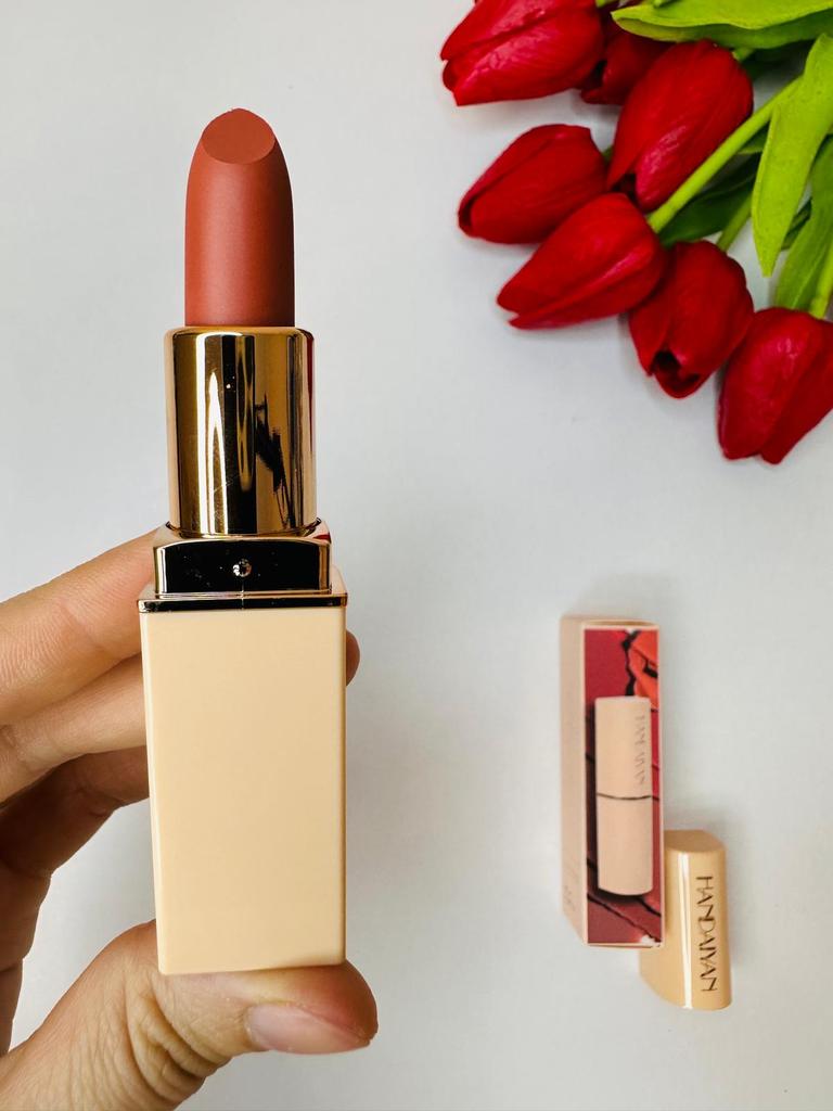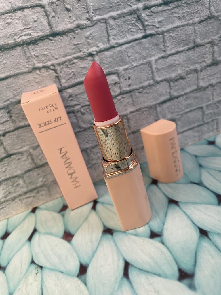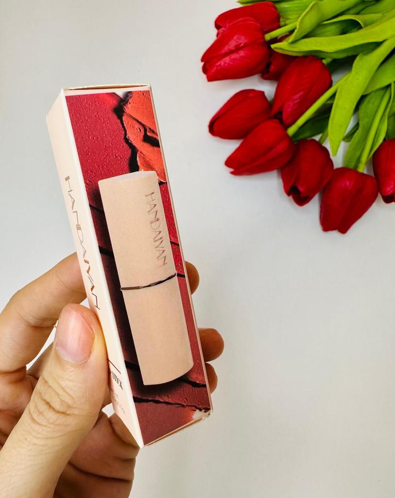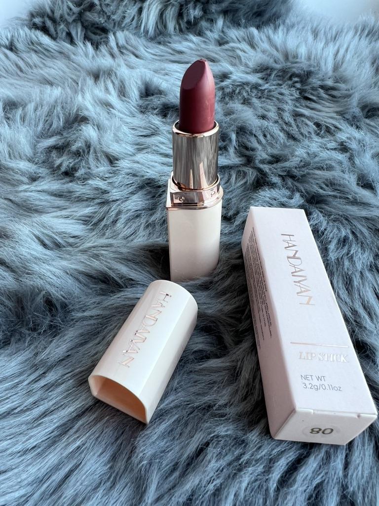 Welcome I really like HandAiyan lipstick, its color is so beautiful, it comes out creamy like butter on the lips, but at the same time it is long-lasting. I recommend it and give it 10/10. It arrived to me within a week and a half, and the packaging was nice.
