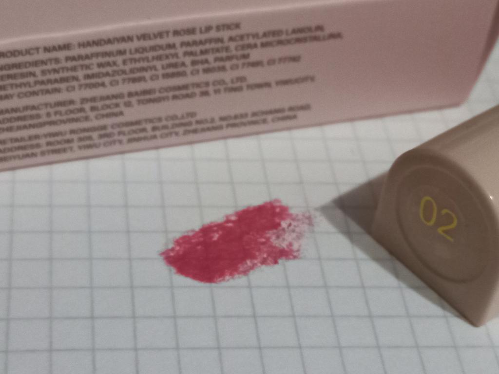 Lipstick The application is simple and with just a few strokes I got a brilliant color. The consistency is soft, ultra creamy and it lasted several hours. The packaging is minimalist but the product is good and I recommend it!!! Arrived in 3 weeks 🌈🌈🌈🌈 CONCLUSIONS Excellent value for money💯💯💯