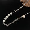 Love Pearl Necklace Asymmetrical Splicing Design Sense Niche Neck Chain Accessories Simple Individual Cold Wind Collarbone Chain
