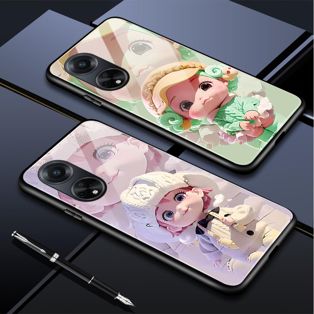 For OPPO A16 A16s A18 A38 A58 A78 A96 A98 Reno8T 10 Pro 12F Realme C30 C33 C63 C65 C67 Cute Cartoon Girl Shockproof Glossy Tempered Glass Phone Case