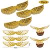 50Pcs Wings Chocolate Cake Party Cake Decoration Wizard Topper Gold Wing Cupcake Toppers Snitch Wedding Birthday Decor