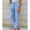 Women's Summer Elastic Waist Pocket Wide Leg Trousers Nine Points Pants