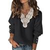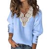 Women Autumn Winter T Shirts Long Sleeve Sexy Lace Patchwork V Neck Buttons Sweater Jumper Mesh Design Fashion Hollow Out Tops