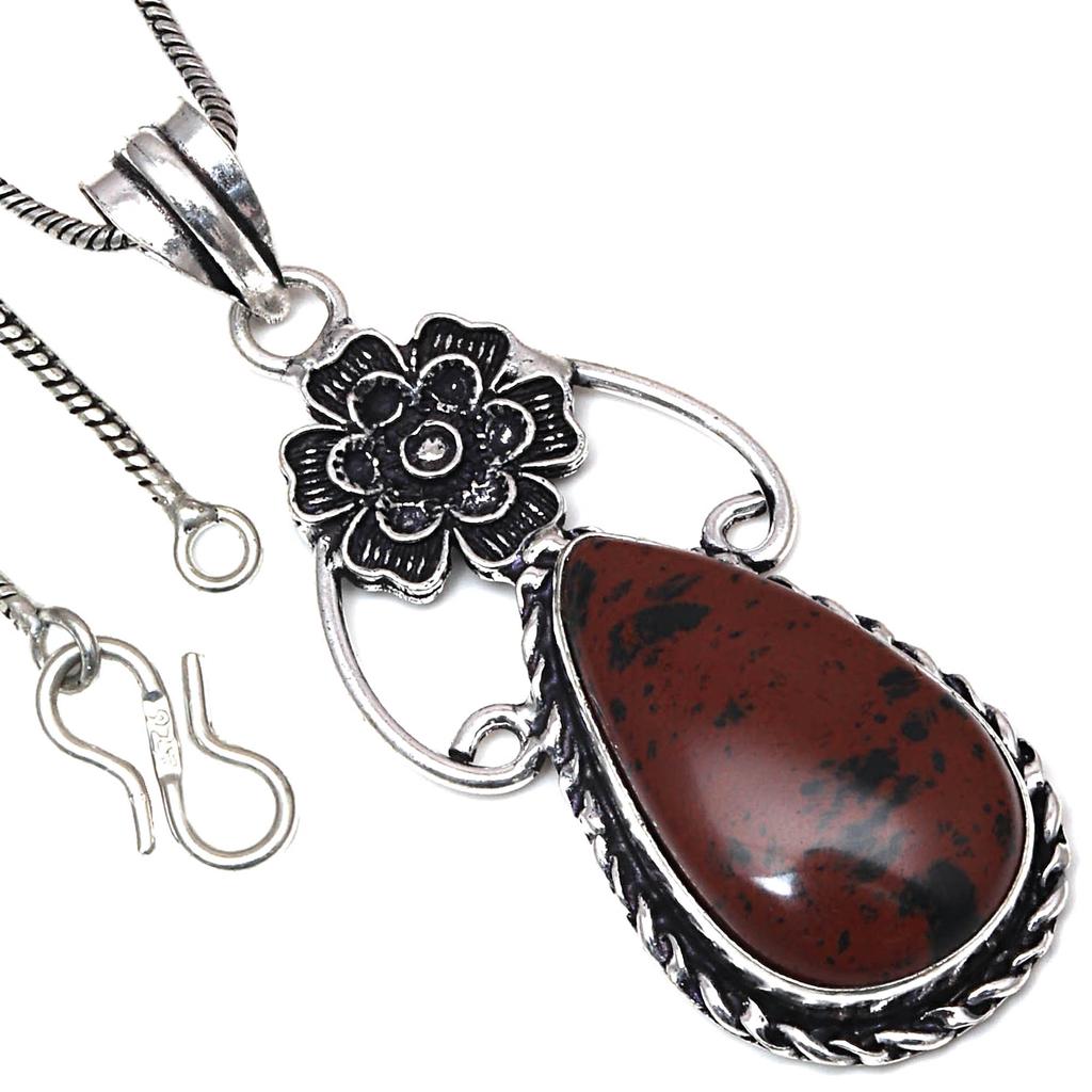 Pendant Mahogany Obsidian Gemstone Handmade Antique Silver Jewelry 2.5"