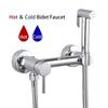 Brass Faucet Shower Toilet Bidet Faucet Portable Sprayer Bathroom Toilet Bidet Hot and Cold Mixers Water Valve Jet Set