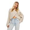 Casual Elegance: Embrace the relaxed sophistication of our sweater featuring a solid color fabric and loose fit design. The round neck, bat sleeves, and navel-baring detail add a touch of casual charm to your look.