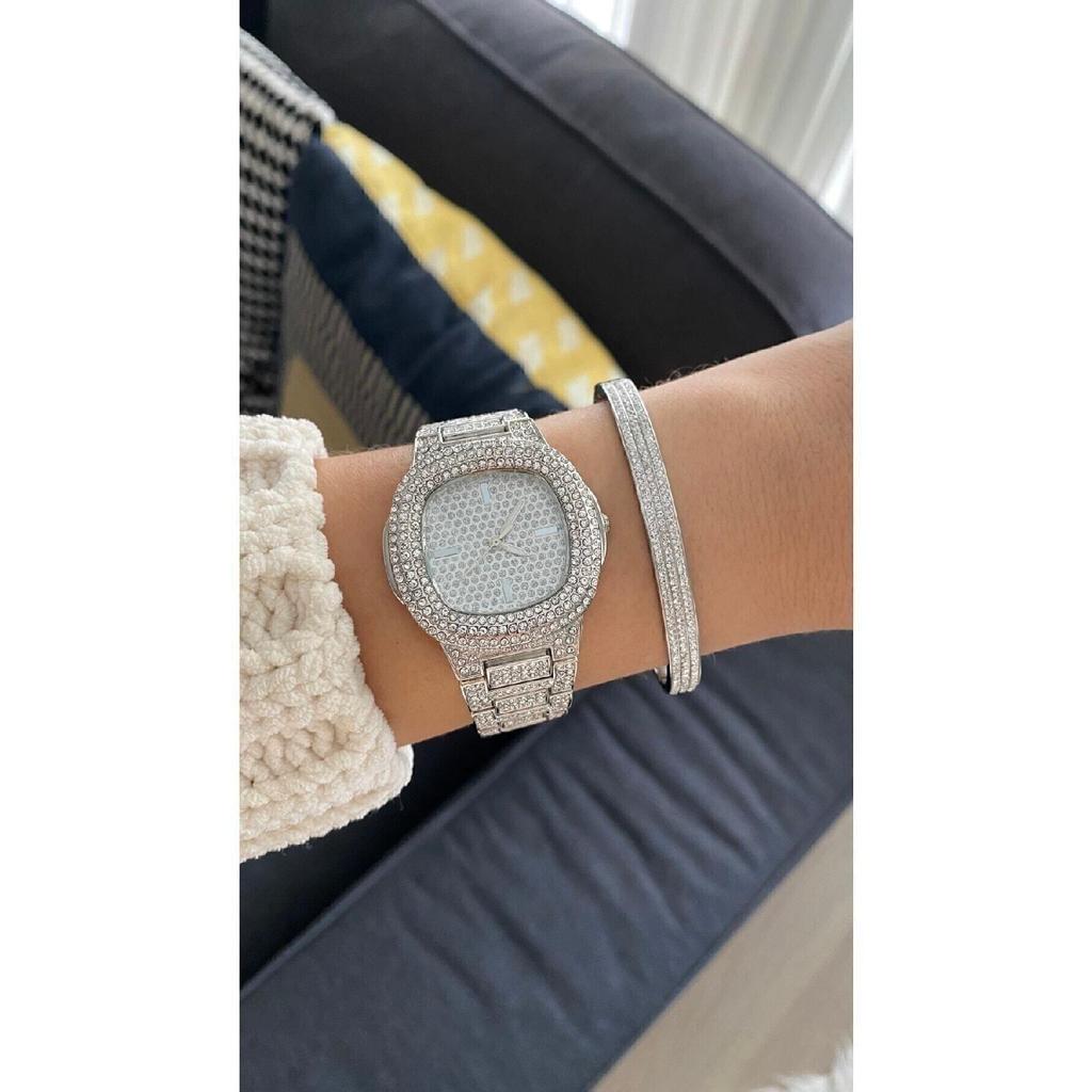 Stoned Silver Color With Metal Strap (watch Only) Women's Wristwatch