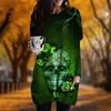 New In Autumn Skull Lightning Print Plus Size Dress Women O'neck Long Sleeves Casual Pocket Dresses