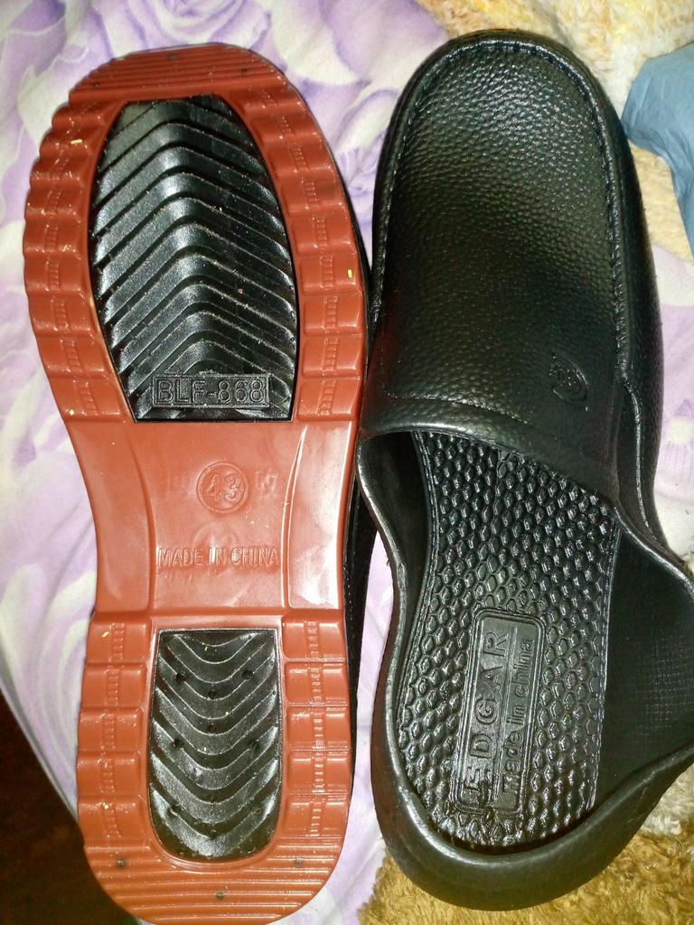 The shoes are rubber, good to wear in the rain, so that your feet don't get wet. But they look like leather, no one will guess that you are wearing rubber shoes. They look good on your feet.