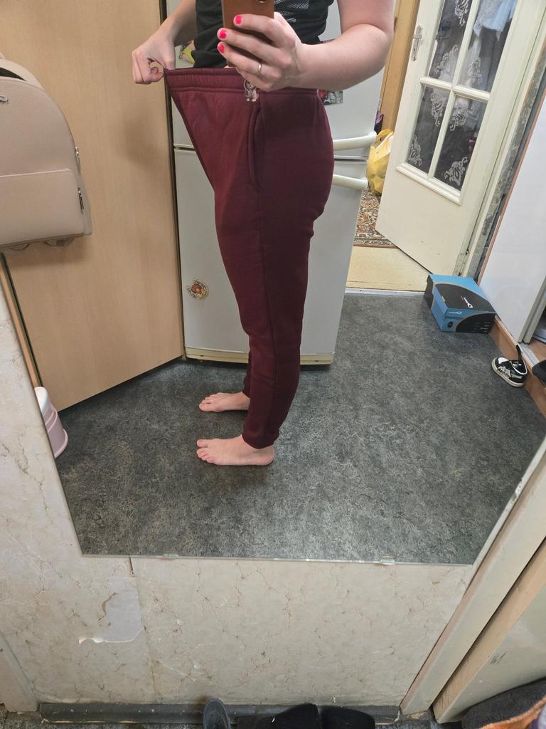 I thought it would be a tad bit baggier cause i went a size up but it's not that baggy.. its like regular sweatpants & the colour is a bit darker than the photos.. but I like them anyhow👍 Didn't get the gift that was promised.. that wasn't why i bought it, but I would've been happy if i got the hair ties🤷♀️
