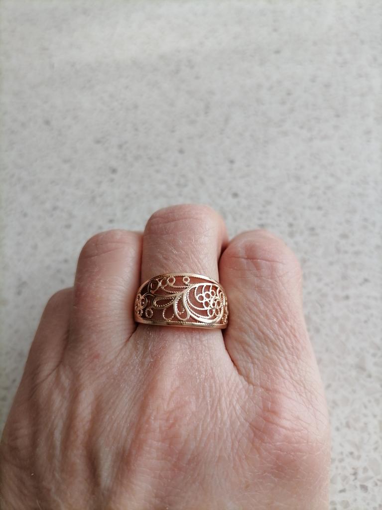 The ring is no different from gold, and the openwork pattern is amazing!