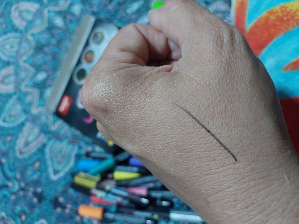 It doesn't need water or sweat excuse to run and stain you all over like all the ones I've tried so far. Furthermore, cleaning and removing the stain takes work, it's not easy, at least with makeup remover wipes