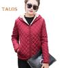 Elevate your style with this versatile women's cotton jacket. Crafted with a solid color diamond pattern, this slim-fit jacket features a cozy hood for added warmth. The velvet lining is soft to the touch and ensures optimal temperature retention.