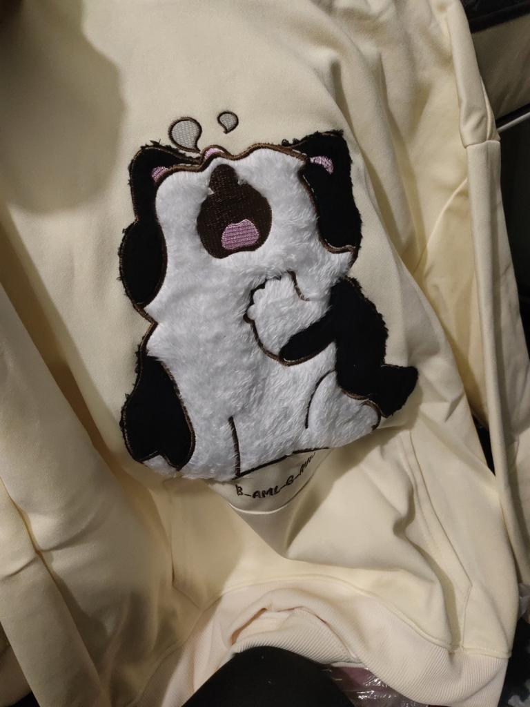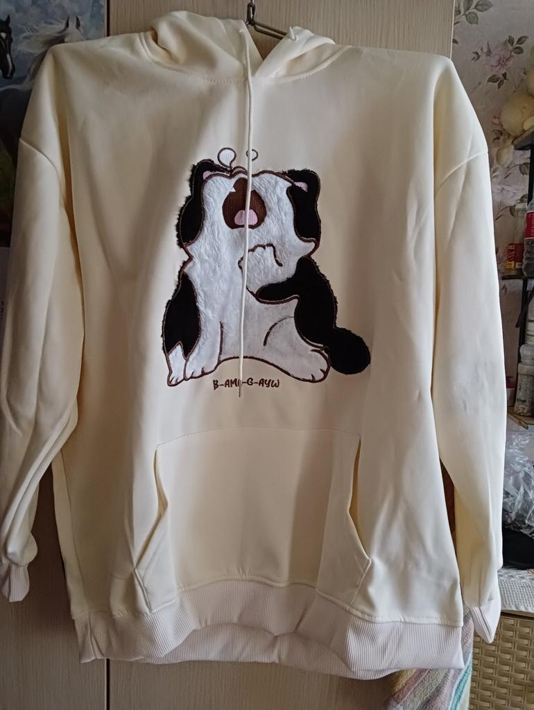 Japanese Kawaii Flock Embroidery Cartoon Cat Patchwork Hoodies Thicken Kangaroo Pocket Baggy Street Sweatshirt All-Matching Top