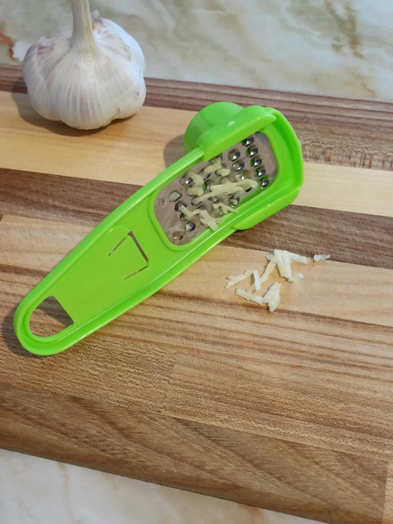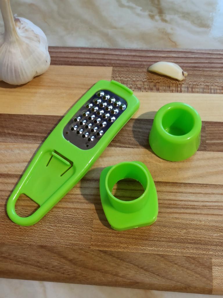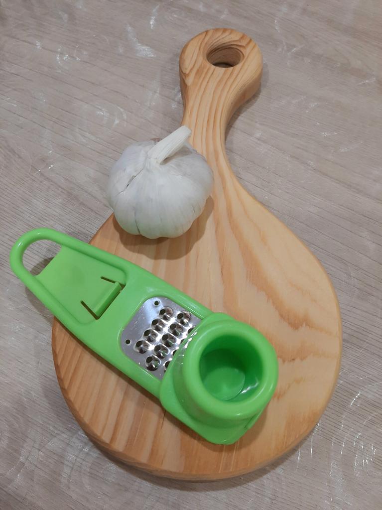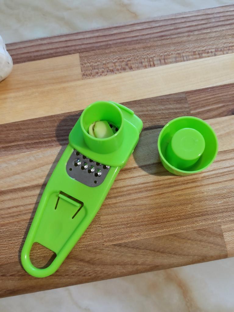 Garlic grater🧄 The shredder is equipped with a plastic base with a stainless steel metal grater and a special capsule, which holds the garlic cloves while grating This part is removable, you can easily install and remove it.... The mini grater is suitable for grinding garlic, nuts, and ginger. Can be washed in a dishwasher. If food remains appear on the teeth, they are quickly washed off under running water or in the dishwasher.