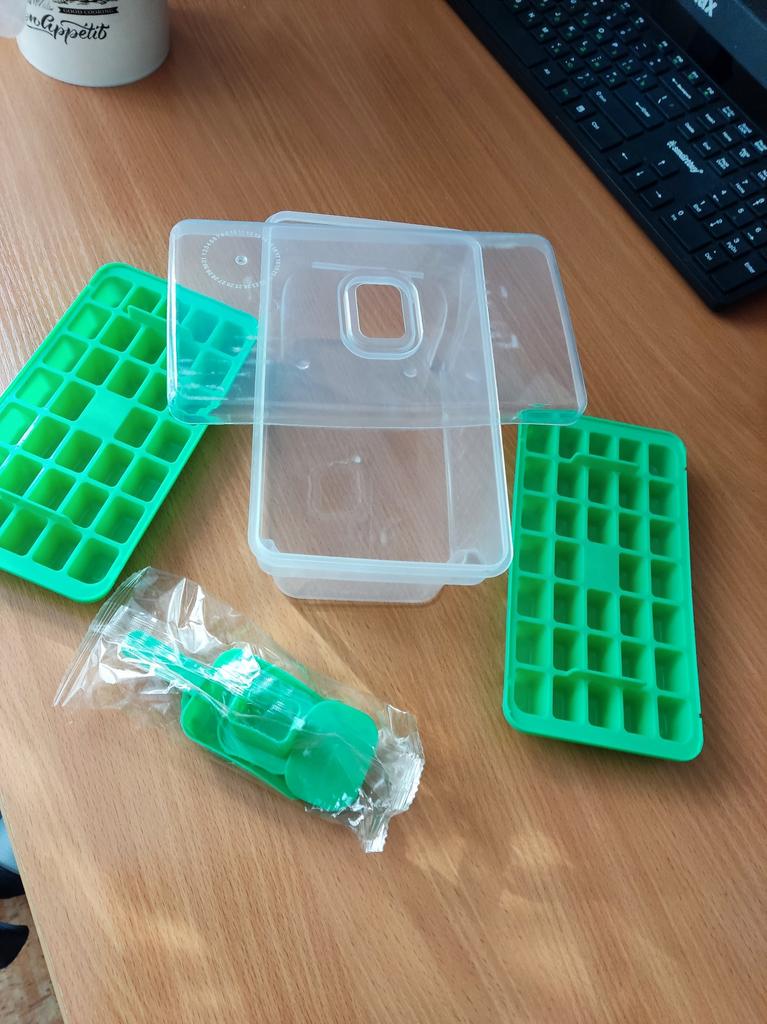 The plastic is high quality. The box is convenient. The size of the cubes is suitable for drinks, preparing greens for cooking dishes. Very convenient. For cosmetology, the cubes are small. I am satisfied! I recommend for purchase👍