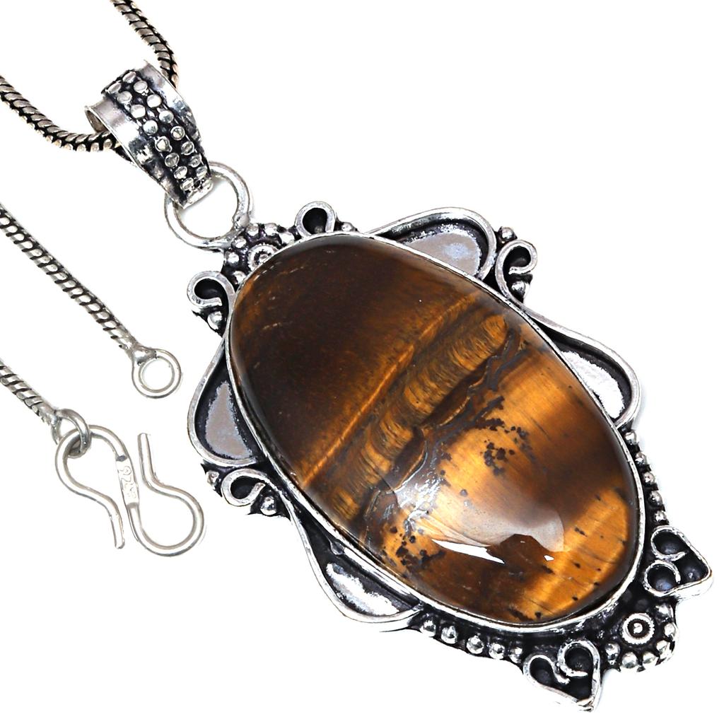 Pendant Tiger's Eye Gemstone Handicraft Valentine'Day Silver Jewelry 2.25"