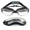 Swimming Goggles with Attached Earplugs Anti-Fog No Leaking Comfortable Electroplated Swim Goggles with Box for Adult Women Men Youth