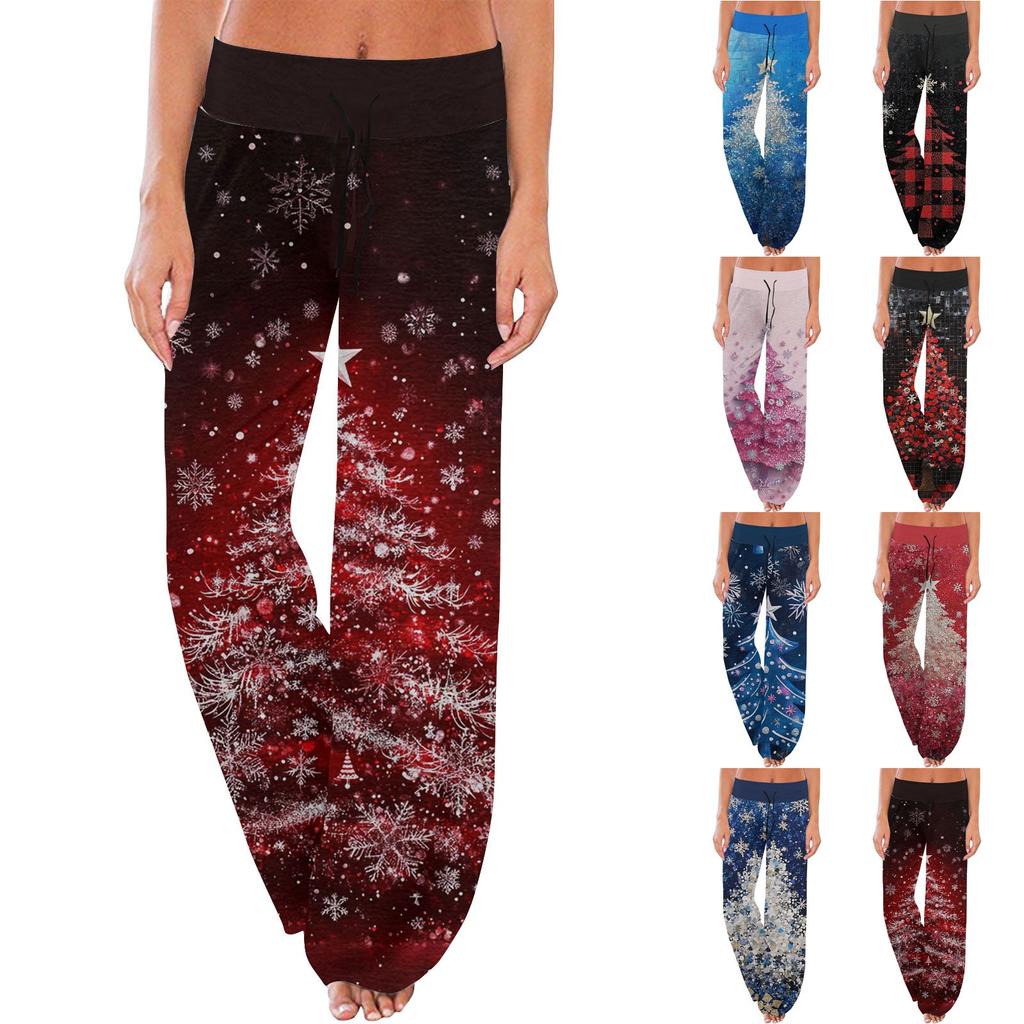 Women's Comfortable Pajama Pants Pants Christmas Print Drawstring Wide Leg Pants