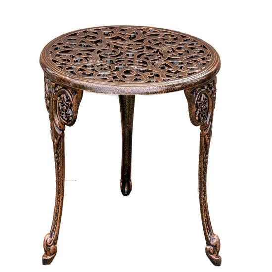 DESIGN: This classic round table features a rich brown finish. The waves and geometric design highlight the table, which is a piece of art that will look great in any outdoor setting. The round patio table is extremely attractive and suitable for a variety of outdoor settings.