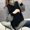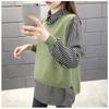 Fake Two Piece Striped Shirt Sweaters Women's Lapel Collar Long Sleeve Pullover Tops Spring Autumn Outerwear Knitted Sweater