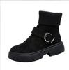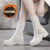 Fashion Shoes for Women Winter Fashion Knitting Velvet Ankle Boots Women Korean Lace-up Platform Botas Warm Square Button Botas De Mujer