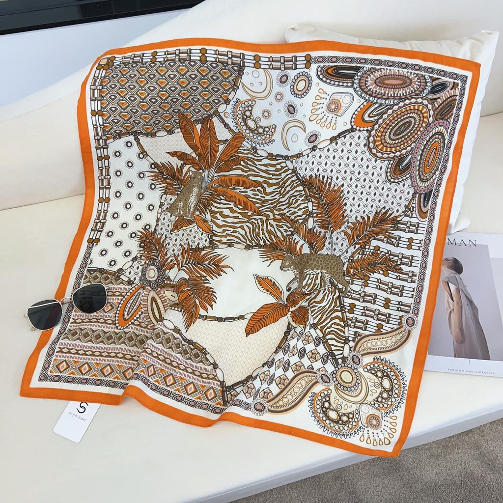 2024 New Fashionable Versatile Silk Scarf 68 Cm Printed Sunscreen Decorative Small Square Scarf Velvet Texture Scarf