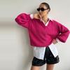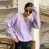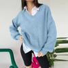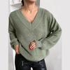 Autumn and Winter Women's Knitted Sweater Casual Pure Color Long Sleeved V-neck Pullover