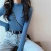 Autumn and Winter Long Sleeve Pullover Hundred Solid Color Women's Sweater Half High Neck Slim Knit Bottom Shirt
