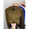 Spring and Autumn Women's Knitted Bottoming Shirt Hollow V-neck Long-sleeved Sweater Sexy Solid Color Bottoming Versatile Knitwear Inner Tops