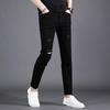 Embrace contemporary style with these sleek men's slim-fit skinny jeans, perfect for the spring and summer seasons. Crafted from high-quality denim, these nine-point black jeans feature a modern ripped design that offers a trendy edge to your wardrobe. The lightweight denim material ensures comfort and flexibility, making them ideal for everyday wear while maintaining a sharp and fashionable look.
