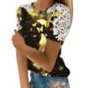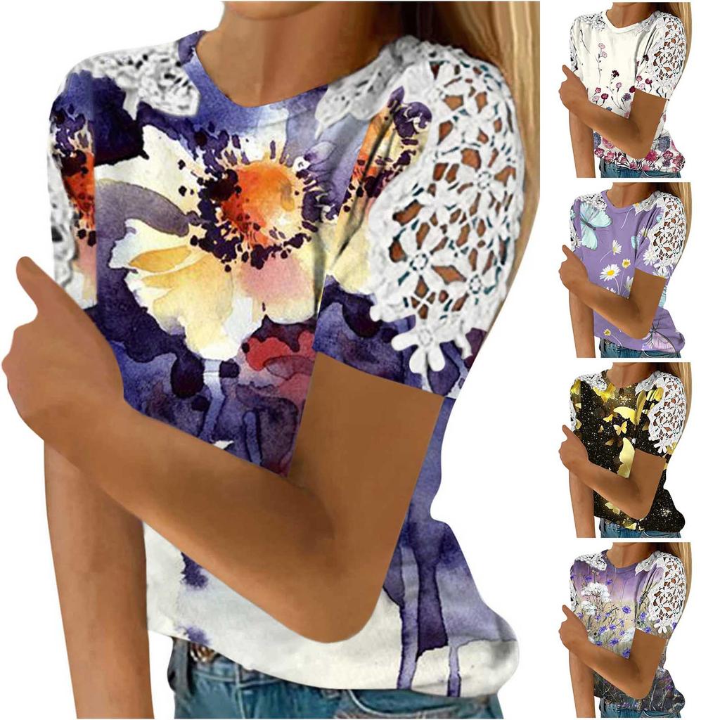 Women's Fashion Lace Hollow Print Round Neck Short Sleeve T-shirt Top