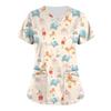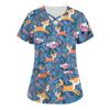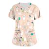 Plus Size Cute Printed Scrub Working Uniform Tops For Women Cross V-Neck Short Sleeve Fun T-Shirts Workwear Tee With Pockets