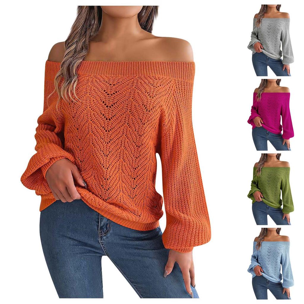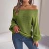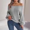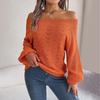 Women's Autumn/winter Casual Solid Color Hollow-out One-line Neck Off-shoulder Long Sleeve Sweater