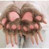 Women Cute Cat Claw Paw Plush Mittens Warm Soft Plush Short Fingerless Fluffy Bear Cat Gloves Costume Half Finger Party Gift
