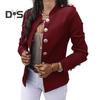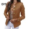 The design includes a stand collar and button closure, combining simplicity with a fashionable edge. Pair this classic suit coat effortlessly with various outfits such as T-shirts, vest, shirts, skinny jeans, suit pants, sandals, high heels, boots, and statement necklaces for a polished look suitable for any occasion.