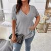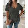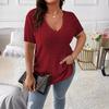 Spring Summer Women's Tops Solid Color V-neck Loose Pit Stripe Brushed Short Sleeved T Shirt