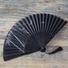 Chinese Japanese Flower Print Folding Silk Bamboo Fan Ornament Art Craft Gift Wedding Dance Performance Hand Fan